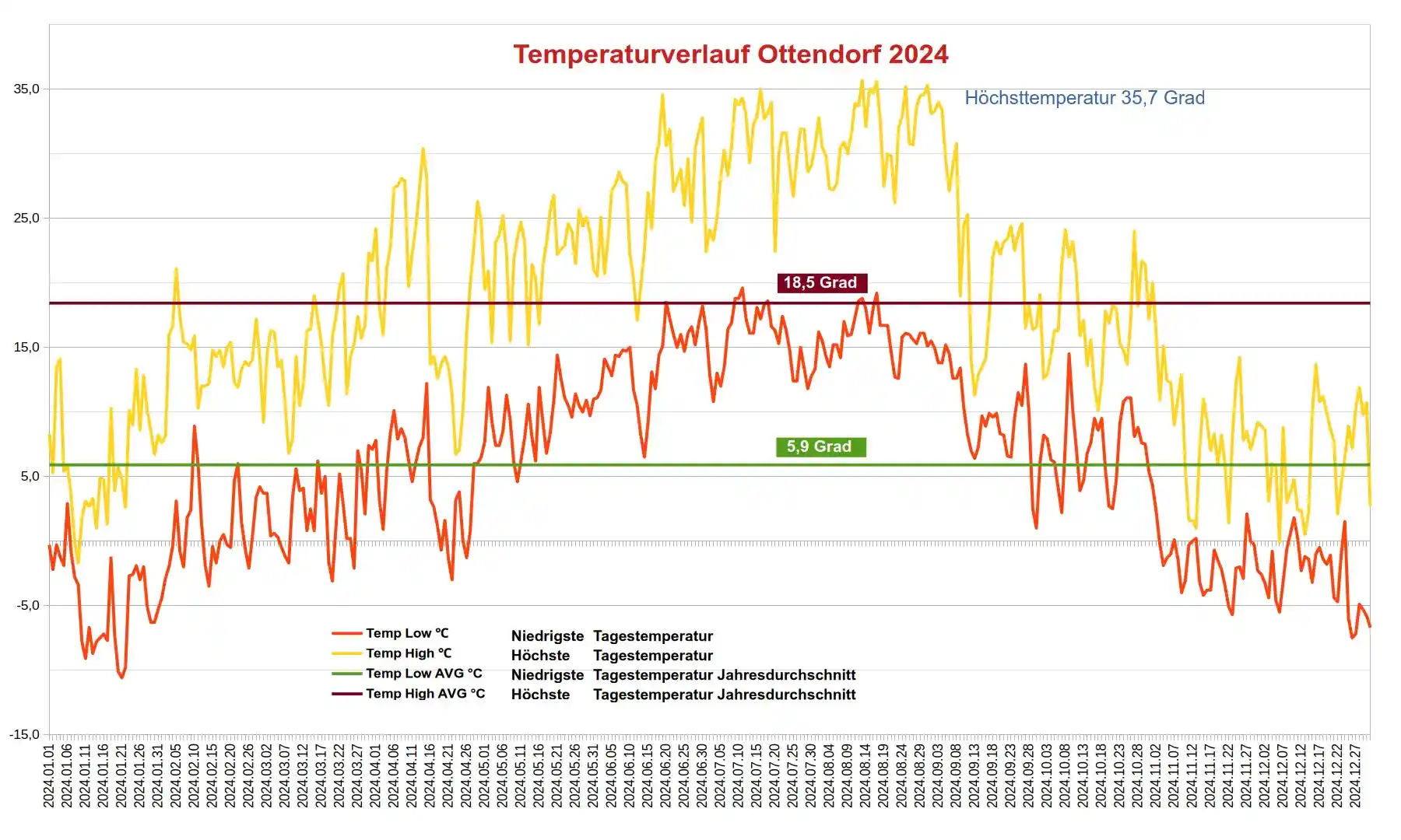 | Höchste Temperatur | 35,7 | 37,2 | Grad C |